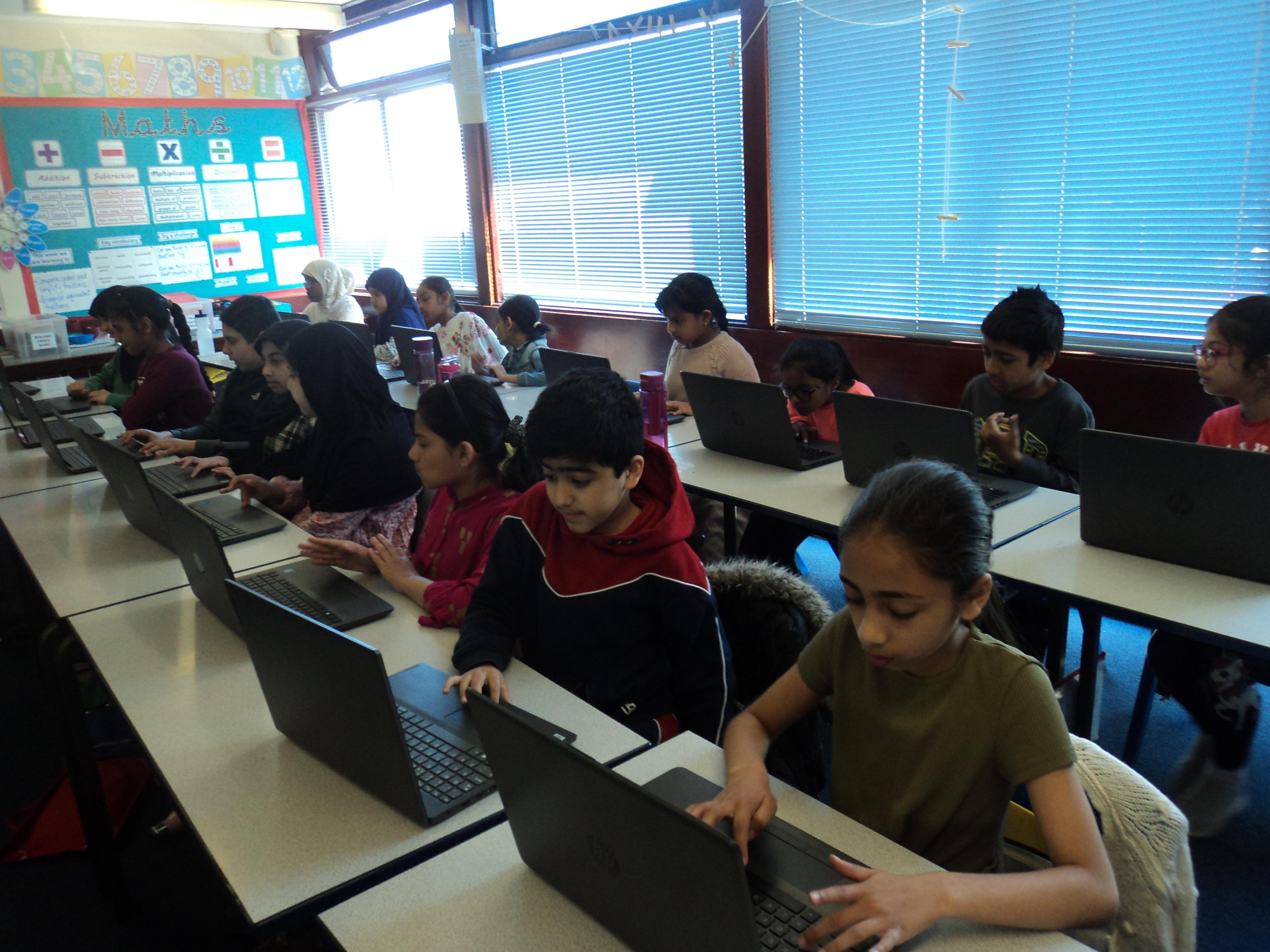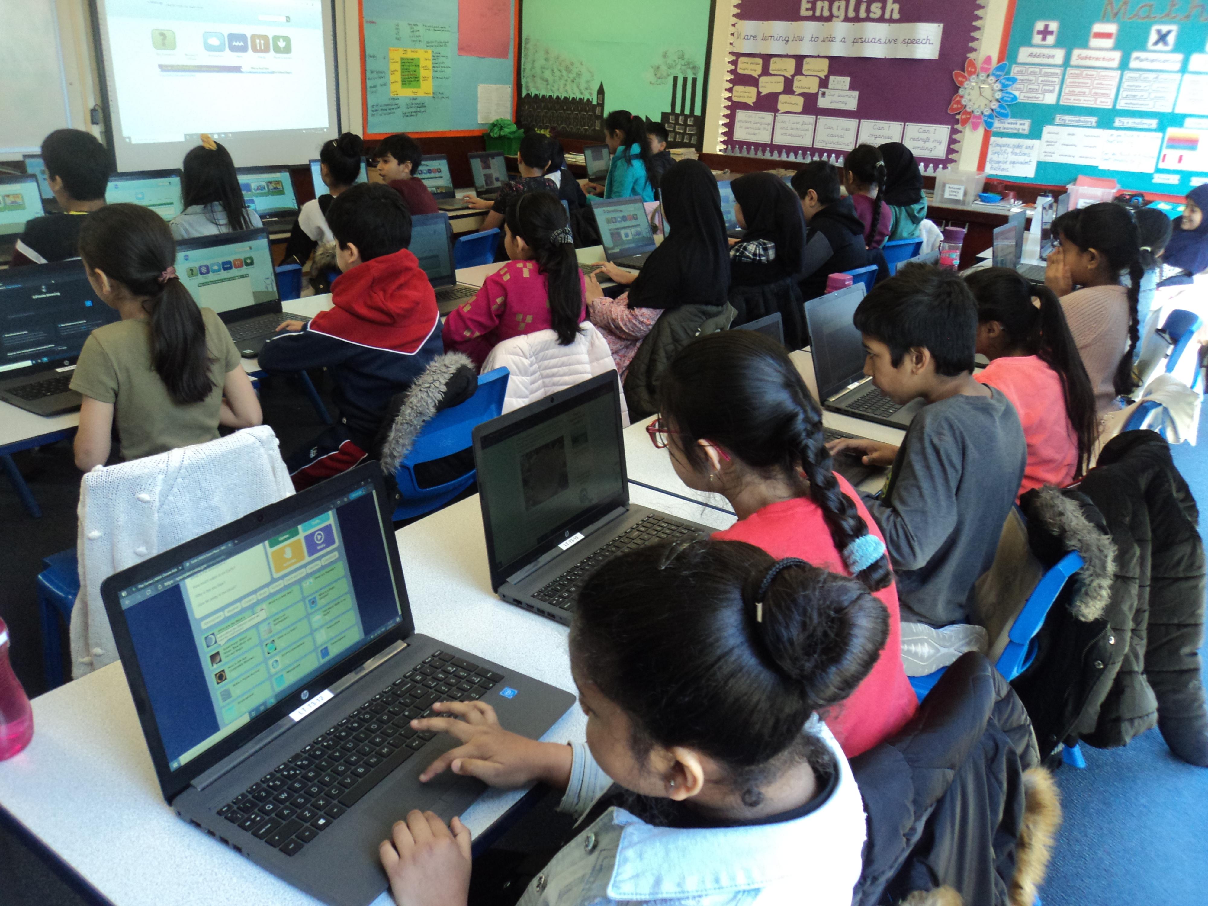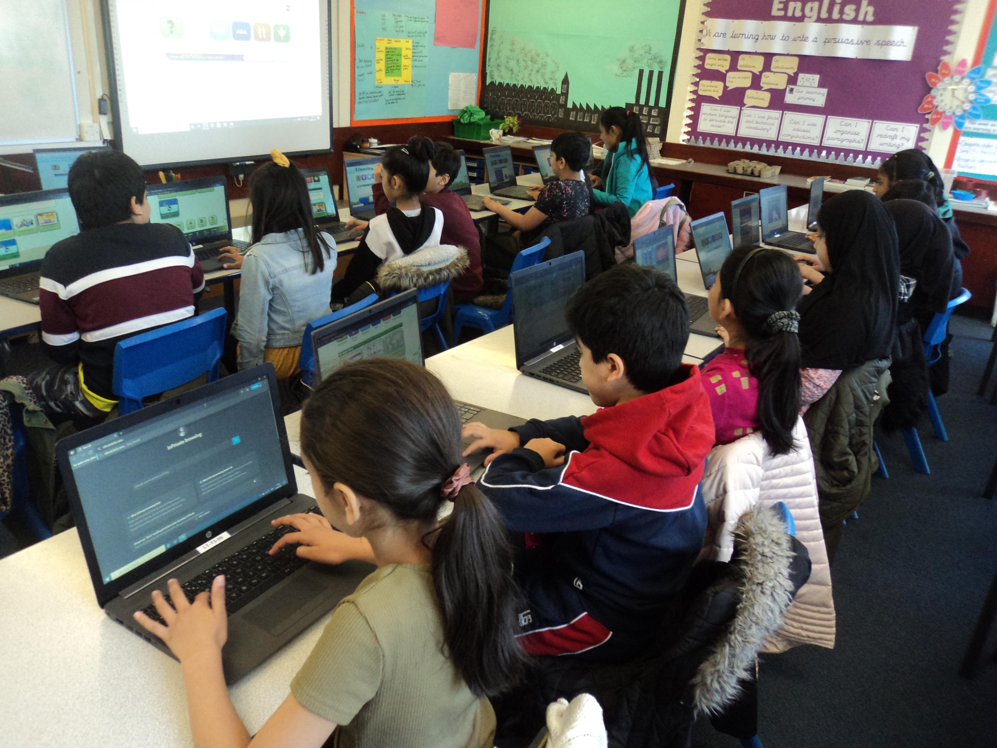 In Bridge Junior School we have a variety of hardware and software for the children to use. Children use laptops, iPads, digital cameras etc, as shown in the photos above, to aid and support their learning in a particular topic. We are registered with various websites where children can utilise online learning and have installed offline software. Additionally, we also work with the children to improve their digital literacy skills through classroom lessons and displays. Children use programming languages 'Scratch' and 'Kodu' to code on laptops and iPads in Computer Science.